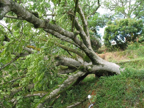 台风对乔木型的果树影响很大,特别是对结果期的橄榄树,其破坏性极大。轻则枝条折断,果实脱落,产量下降,重则整株折断,有时连根被拔起。长期以来,台风是威胁橄榄生产的主要自然灾害之一。 2006年1号台风“珍珠”在潮汕登陆,给农业生产带来严重破坏,造成重大的经济损失。河堤决口,成片的田园被淹,水稻、蔬菜等农作物浸没水里。 房屋的屋顶被风掀起,瓦片被吹掉,很多临时建筑物遭到严重损坏,经济损失严重。 图片:倒伏的橄榄树;受浸的水稻 (拍摄于归湖镇)